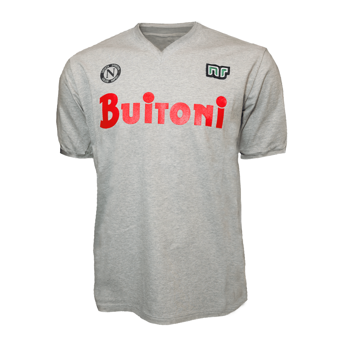 Het originele Napoli derde shirt voor de uitwedstrijden uit het seizoen 88/89 met het legendarische rugnummer 10 van Maradona Het shirt is voorzien van het Napoli logo op de borst en gemaakt van de hoogste kwaliteit acryl,een gestikt rugnummer in de klassieke zig-zag stijl en de iconisch geverfde sponsornaam MARS.
